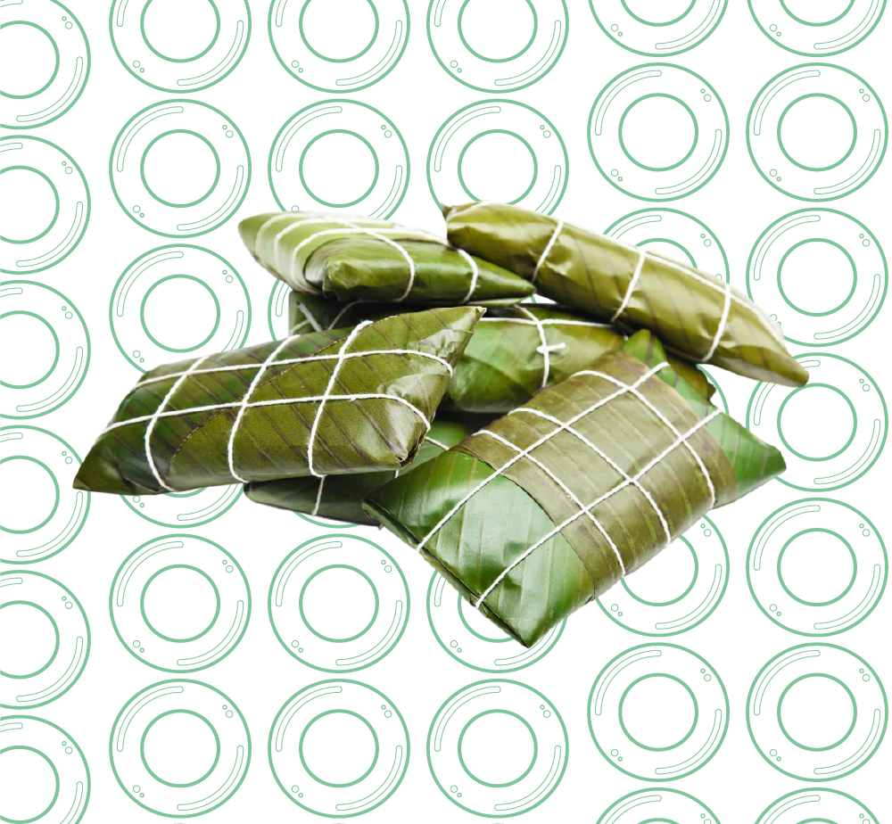 criolla y harina de maíz, envueltos en hoja de plátano amarrados en forma de rectángulo, ideales